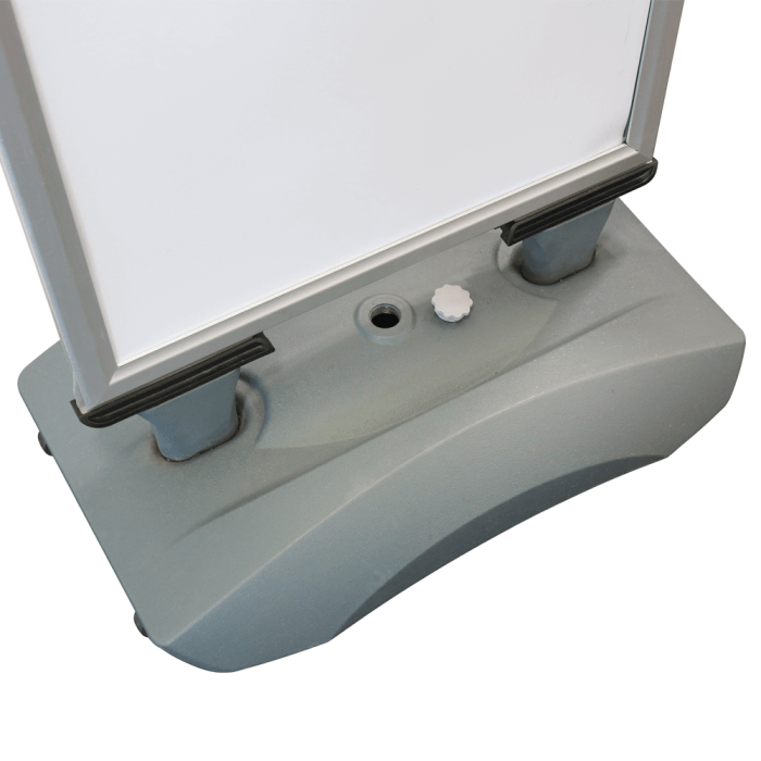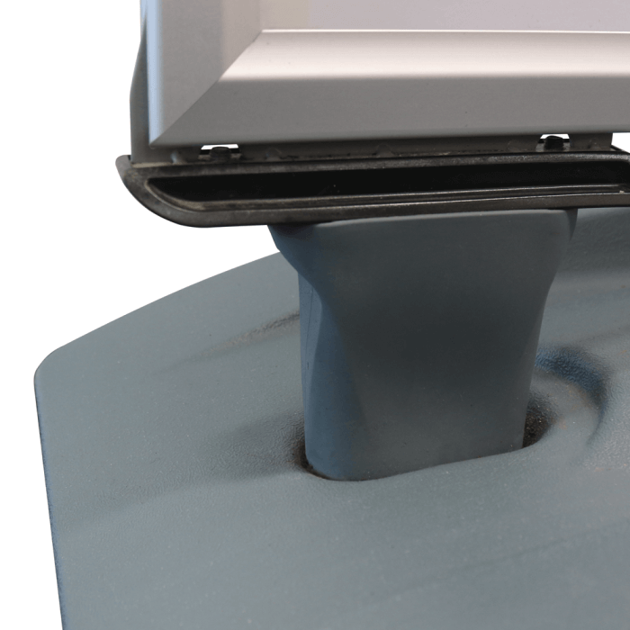 Ensure your promotions look their best, whatever the weather! If you want to introduce outdoor or forecourt signage to your business, then this Weatherproof Pavement Sign is the perfect option. This premium forecourt sign features a tight seal behind the UV-resistant cover sheet to help protect your posters from rain, making it our most weather resistant pavement sign yet. It has a snap frame mechanism, stylish square corners, heavy duty springs, a water base and protective rubber covers over the springs.