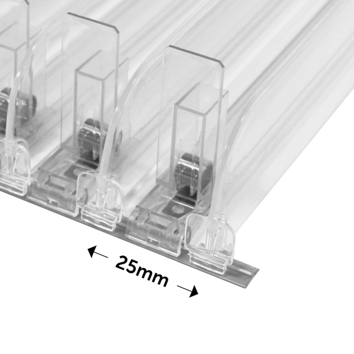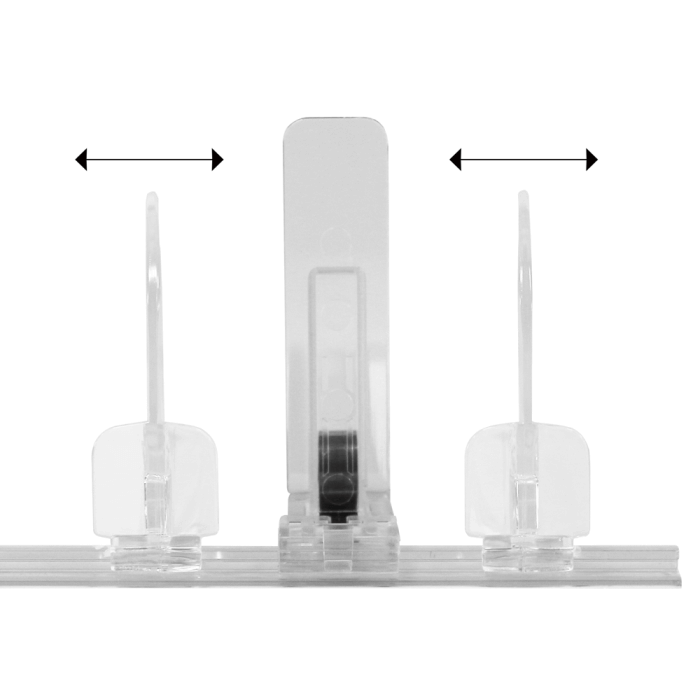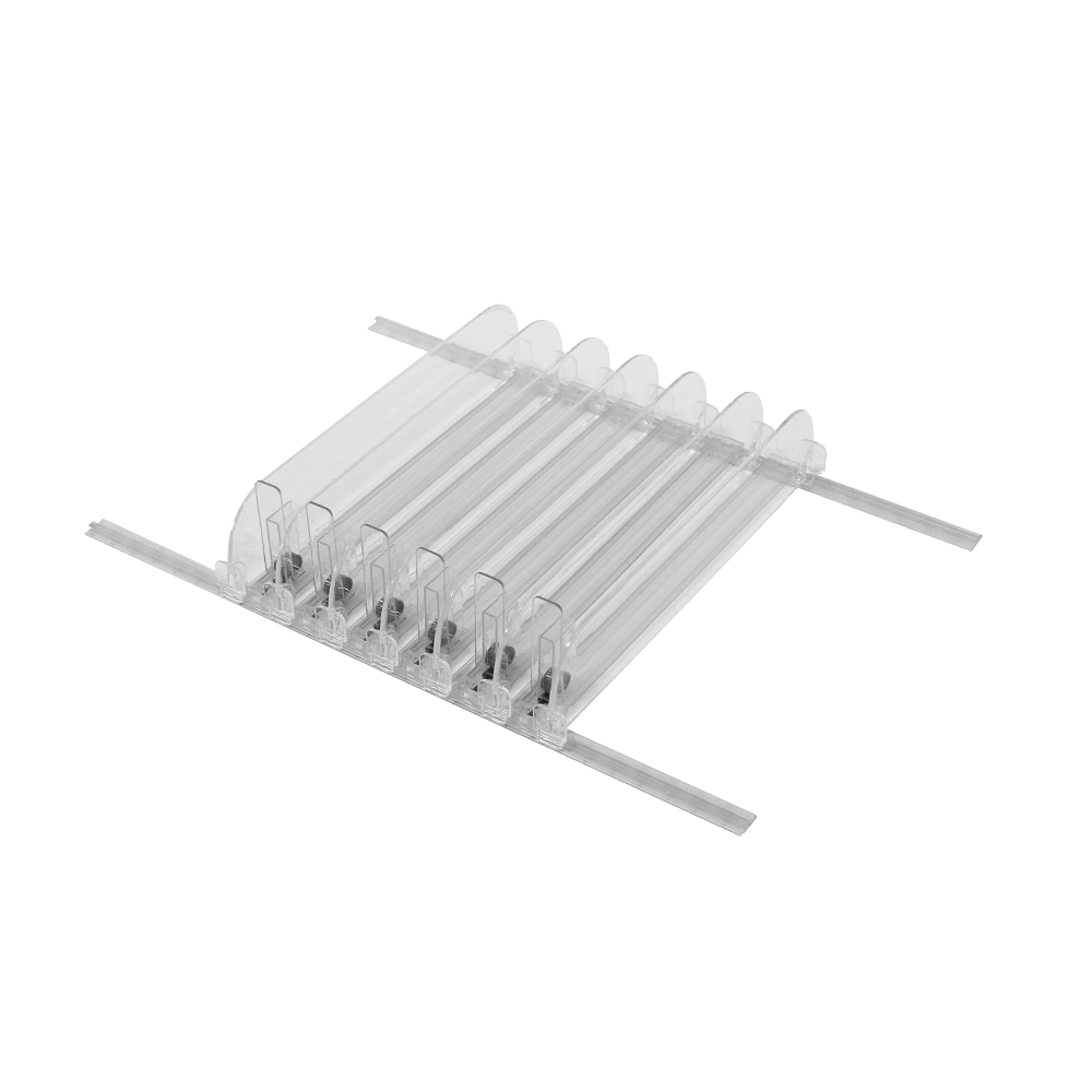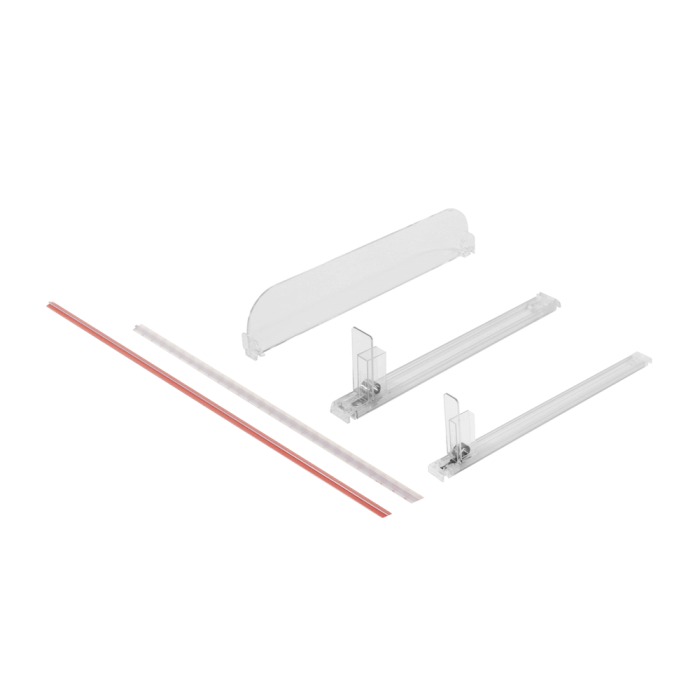 In this kit the push feeds and guide rails are attached, making this shelf management kit very easy to assemble. Each kit comes with your selected number of rows, shelf dividers, and two adhesive t-rails. Simply clip the front and back of the guide rails into the t-rails, then use the adhesive strips to secure them to your shelf. The t-rails can be cut down to size to fit your system and shelf.