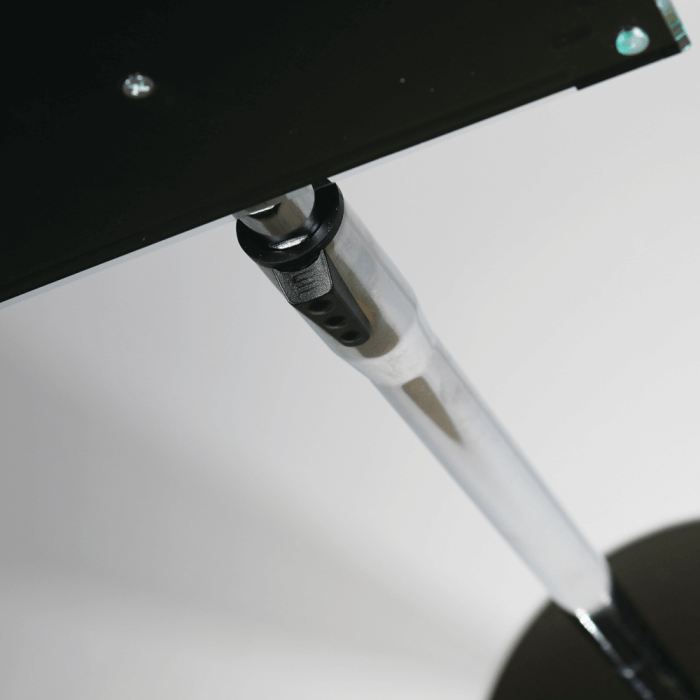 The A4 or A3 poster display stand is manufactured from diamond-polished acrylic, with a smooth, gleaming edge. The base and pole feature a polished chrome finish.