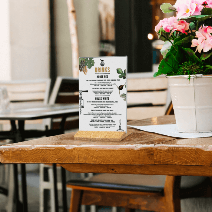 Add a new style and texture to your existing POS displays with this lightweight Cork Base Sign Holder. It's a great addition to bars, restaurants, florists, hotels and retailers, as it would be great for use as a menu holder or for displaying prices, promotions or upcoming events.