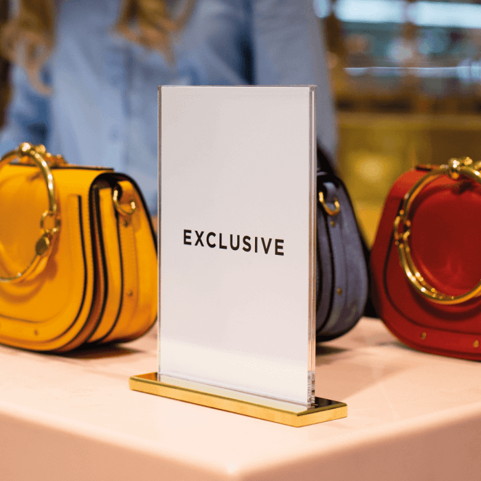 The base is manufactured from solid metal (in one of four finishes), whereas the poster holder is manufactured with a total of 4mm acrylic, ensuring your graphic is encapsulated by two pieces of premium 2mm Supervue acrylic.