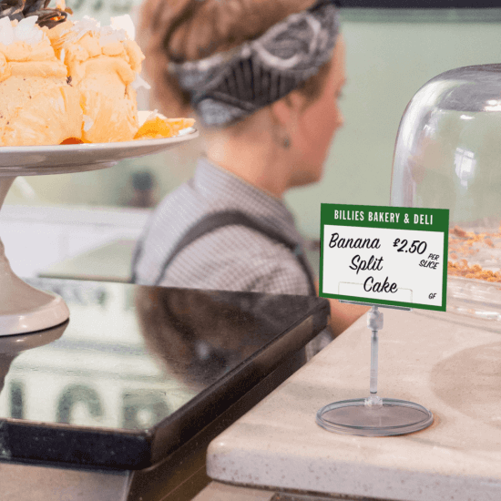 Clearly display prices and promotional messages to customers with this Plastic Ticket Holder. It's ideal for use in bakeries or at deli counters, as it has a round base which keeps the holder in place so that your ticket can be seen, while being easy to move when required. This counter standing ticket holder is supplied fully assembled and ready for instant use.