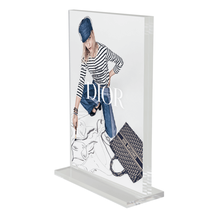 The free standing display block is designed so that the top and sides open slightly to slip poster graphics in and out. Updating posters is quick and simple, making this acrylic poster block a great solution for busy environments with regular POS updates.