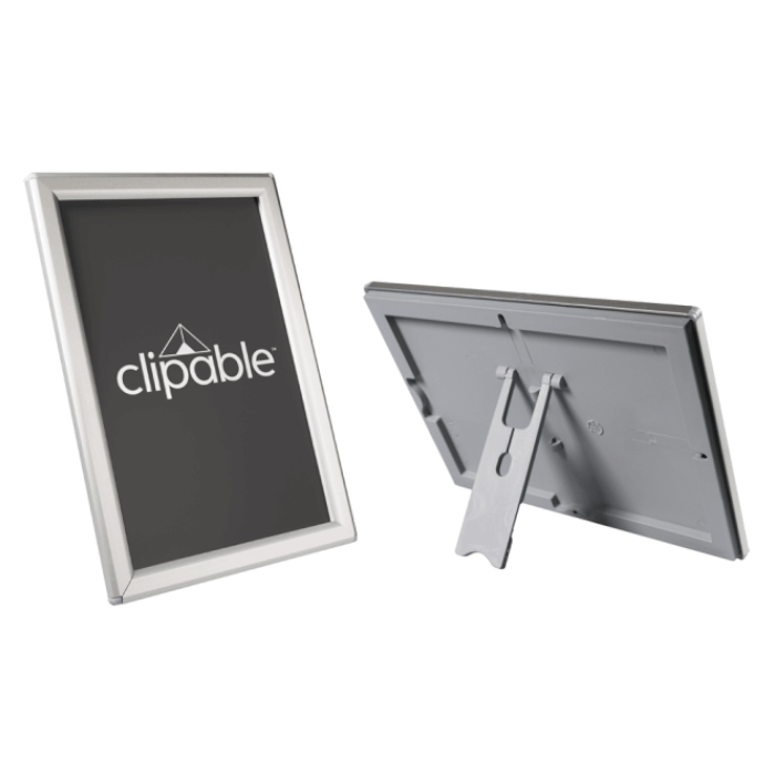 • Dual-purpose slim 15mm silver snap frame in A5 and A6 sizes